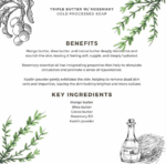 Key Ingredients-Mango Butter, Shea Butter, Cocoa Butter, Coconut Oil, Rosemary EO.